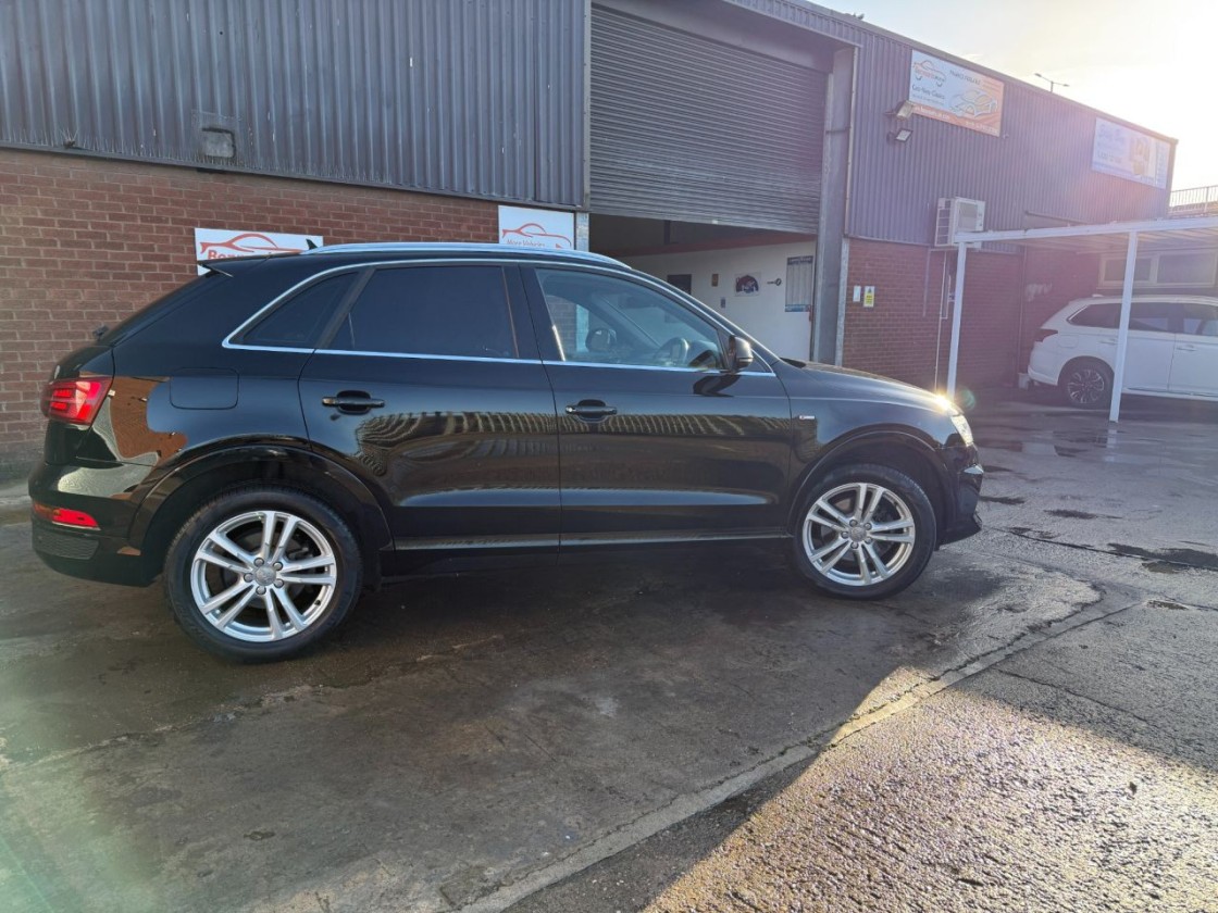 This 2017 Audi Q3 1.4 TFSI CoD S line Edition is a stylish and refined compact SUV that delivers premium quality, strong performance, and impressive efficiency. Finished in sleek black, it has covered 53,660 miles and is powered by Audi's reliable 1.4-litre turbocharged petrol engine producing 150 PS. Paired with a 6-speed manual gearbox and Euro 6 compliant, it provides a smooth, responsive drive that's ideal for both city use and long-distance journeys.