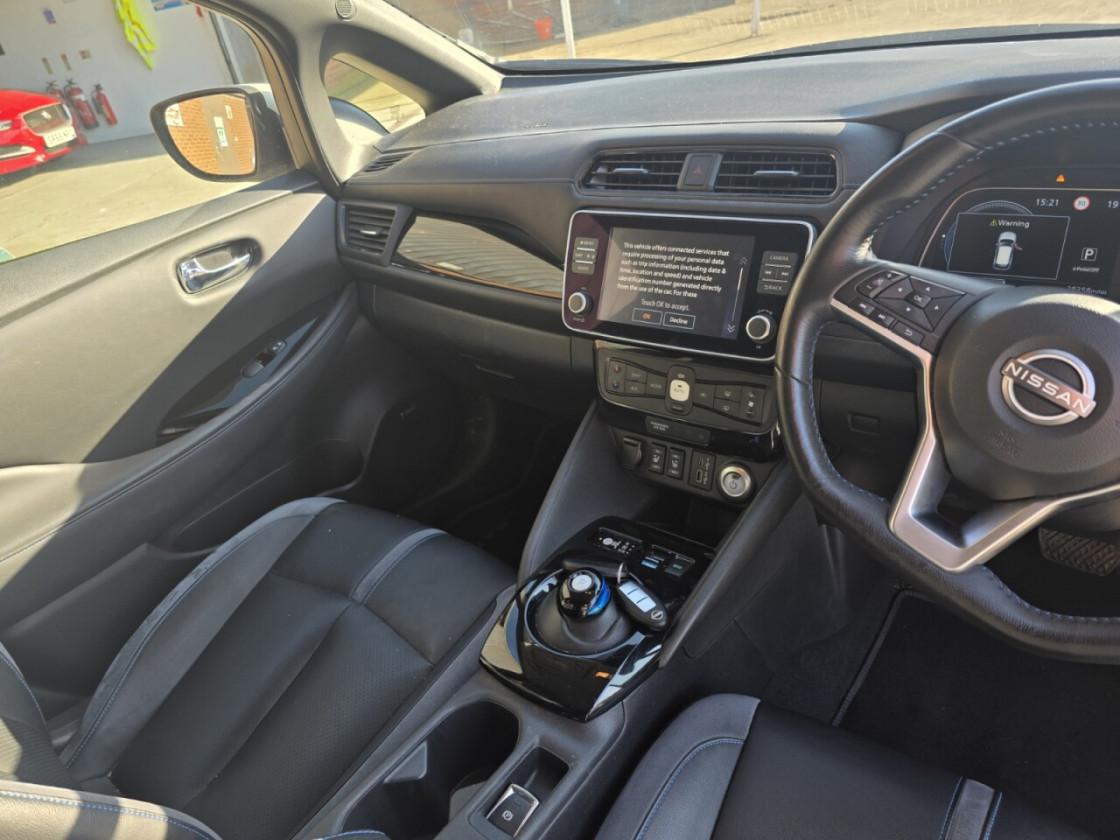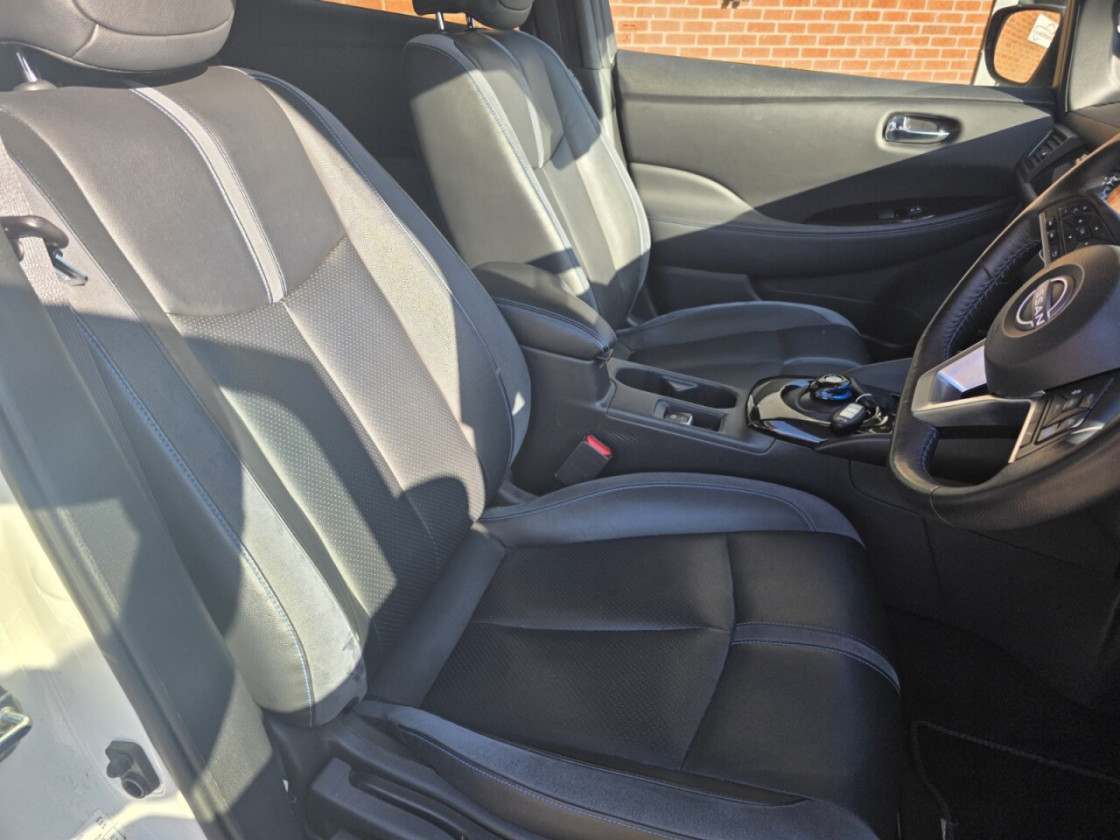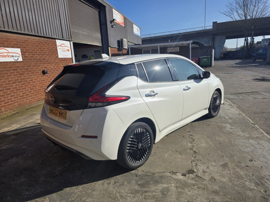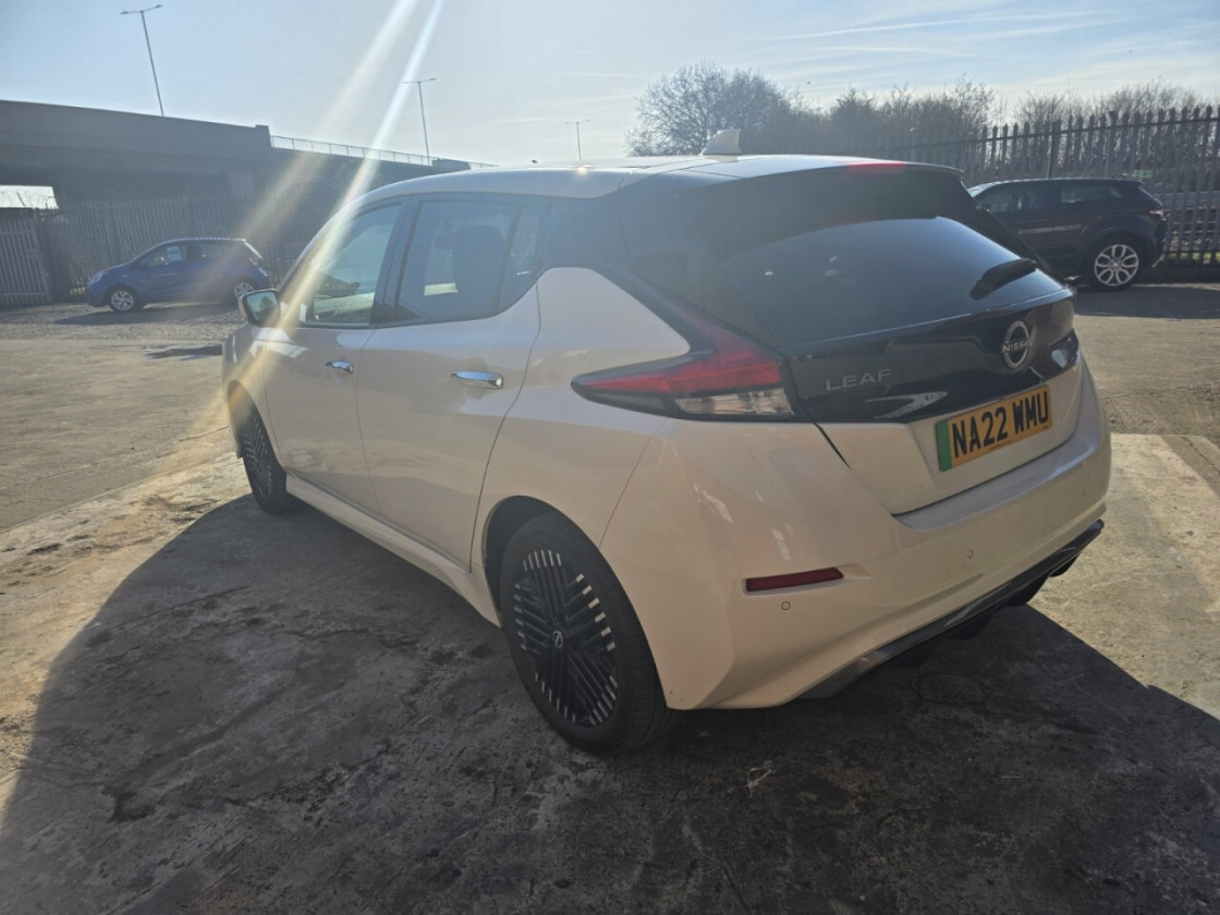 NISSAN LEAF 59kWh e+ Tekna Hatchback 5dr Electric Auto (217 ps) low mileage at 28258 miles will come with a new Nissan service and a new clean Mot, 12 Months Warranty included. Two Keys The Nissan Leaf e+ Tekna is a 2022 model, boasting a sleek and modern design. This electric vehicle is powered by a 61 kWh battery, providing a maximum range of 239 miles on a single charge.