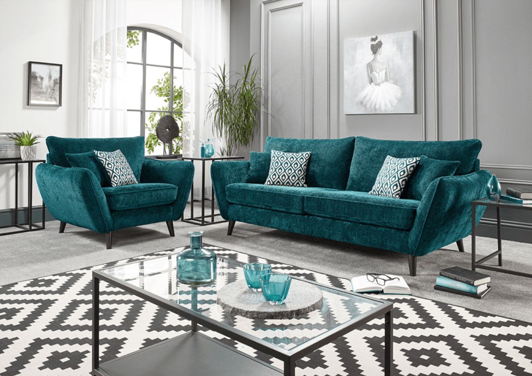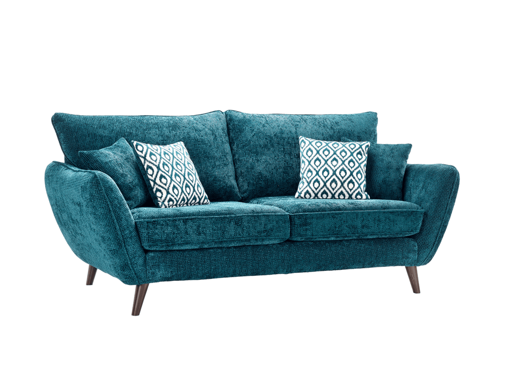 WalnutA modern, scandi inspired piece that oozes style. Simple but eye-catching angled arms featuring centred piping adds character to the model. This model comes in a comfortable high back with bold velvet accent cushions.